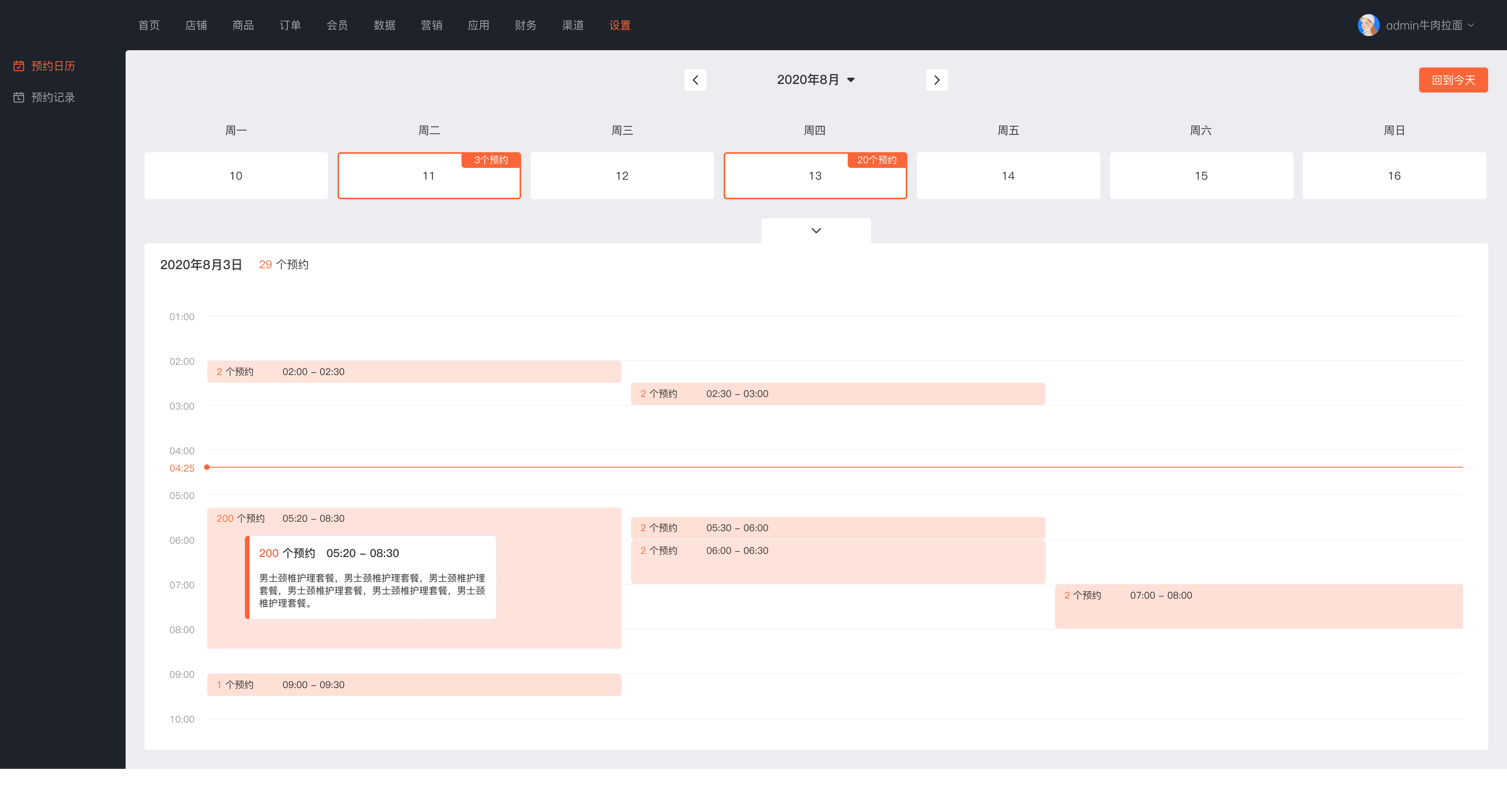预约到店应用本身提供预约日历和记录功能,商家可在日历中更形象直观的查看当前的预约情况。